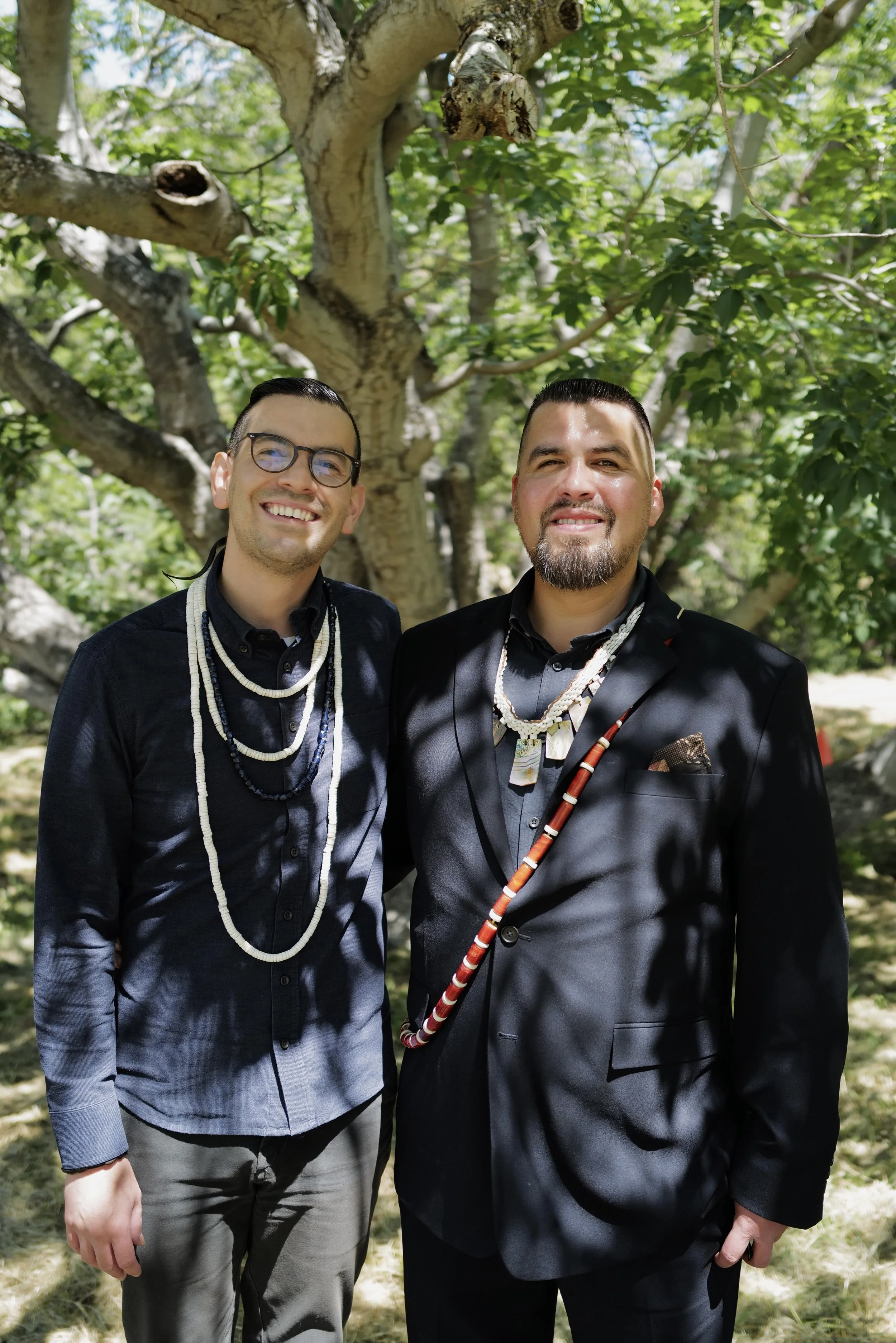 Louis Trevino, First Gentleman of the Ohlone Indian Tribe, is an Ohlone cultural leader. Under the leadership of his partner Vincent Medina, Louis co-founded the cultural institution mak-'amham; the internationally acclaimed Cafe Ohlone; the unprecedented 'ottoy (oh-toy) Initiative on the campus of the University of California, Berkeley; and the mak-warép Ohlone Land Conservancy. Louis is a graduate of UC Berkeley; and active in the Chochenyo language restoration. Louis is an integral part of relationship building with science centers and museums across the Bay Area, including the Lawrence Hall of Science, the California Academy of Sciences, the Chabot Space and Science Center, and the Exploratorium. In addition to his advocacy and educational work, Louis is a traditional artisan and regalia maker of Ohlone finery and a renowned student of Ohlone archives — his work, conducted with accountability to community elders, is done with a great love for Ohlone culture and tradition and is guided by the love and leadership of his partner Vincent.